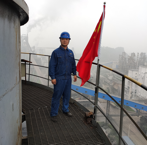 曾部長(zhǎng)在吸收塔上掛紅旗