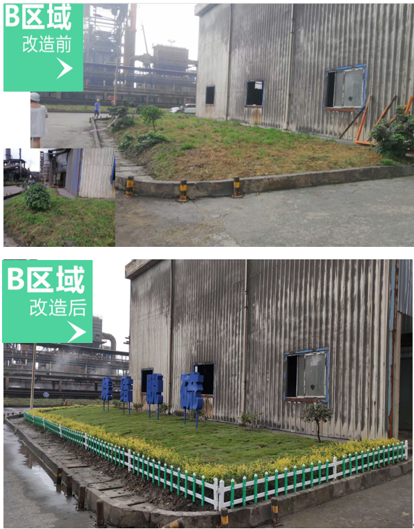 9月內(nèi)江藍(lán)鼎成立了以生產(chǎn)部副部長(zhǎng)曾中東為組長(zhǎng),副部長(zhǎng)陳威、人力行政部吳丹為組員的綠化專(zhuān)項(xiàng)小組。從綠化公司的對(duì)比選擇到現(xiàn)場(chǎng)進(jìn)行實(shí)地測(cè)量制定設(shè)計(jì)方案,從廣告字、圍欄、草坪、苗木、花草的對(duì)比選擇到工期監(jiān)督,綠化專(zhuān)項(xiàng)小組都親力親為。最后確定利用球團(tuán)現(xiàn)有花草材料移栽等方式對(duì)燒結(jié)1#脫硫塔AB兩塊區(qū)域進(jìn)行集中改造的方案。改造歷時(shí)半個(gè)月。改造后的現(xiàn)場(chǎng):茂盛的草坪、四季花期的含笑、三角梅、整齊的迎賓欄,現(xiàn)場(chǎng)比以前更整潔了,環(huán)境更美了。