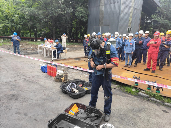 在演練過(guò)程中,西昌藍(lán)鼎組織應(yīng)急搶險(xiǎn)小組迅速展開行動(dòng),分別負(fù)責(zé)環(huán)境化驗(yàn)檢測(cè)、安全警戒、生產(chǎn)搶險(xiǎn)、設(shè)備搶險(xiǎn)和醫(yī)療救護(hù)等工作。演練還模擬了一名工作人員因地面濕滑不慎摔倒受傷的場(chǎng)景,醫(yī)療救護(hù)組立即組織人員對(duì)受傷員工進(jìn)行了現(xiàn)場(chǎng)急救,并成功脫險(xiǎn)。
