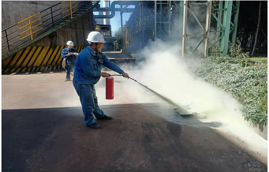 本次演練模擬場景為球團(tuán)綠化帶起火, 14:00演練正式開始。西昌藍(lán)鼎巡檢員在現(xiàn)場檢查時(shí)發(fā)現(xiàn)球團(tuán)綠化帶出現(xiàn)火情,迅速上報(bào)當(dāng)班班長。班長以最快速度將情況上報(bào)生產(chǎn)副部長,生產(chǎn)副部長按照規(guī)定的匯報(bào)機(jī)制,迅速將信息傳達(dá)至球團(tuán)主任。得到搶險(xiǎn)指示后,西昌藍(lán)鼎生產(chǎn)部立即行動(dòng),有條不紊地組織人員疏散,對現(xiàn)場進(jìn)行了嚴(yán)格的警戒隔離,確保周邊人員的安全。同時(shí),各部門迅速組織力量,憑借嫻熟的技能和豐富的經(jīng)驗(yàn),將火情進(jìn)行了有效撲滅。